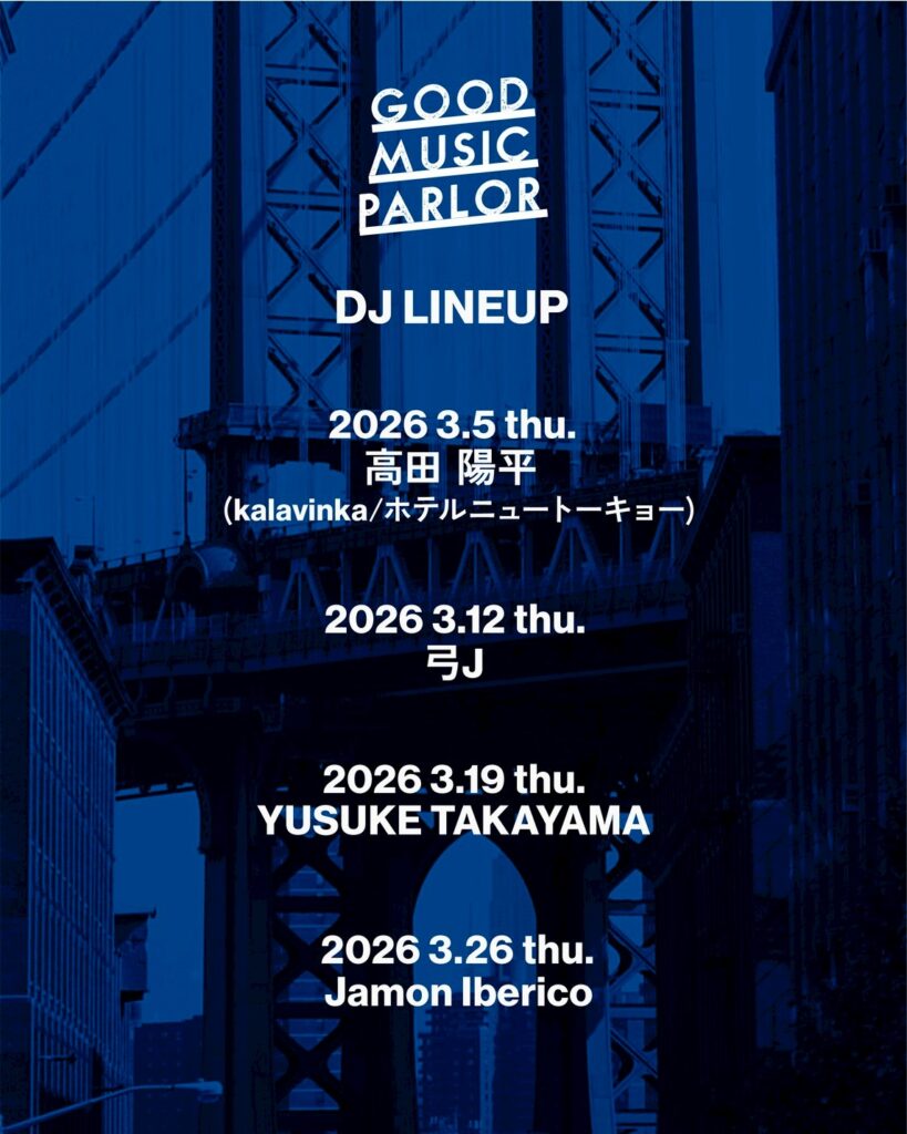 Brooklyn Parlor SHINJUKUで毎週火曜の夜に開催されていた、トップDJが登場するアドミッション・フリーのイベント"Good Music Parlor”が新たな枠組みで再始動!