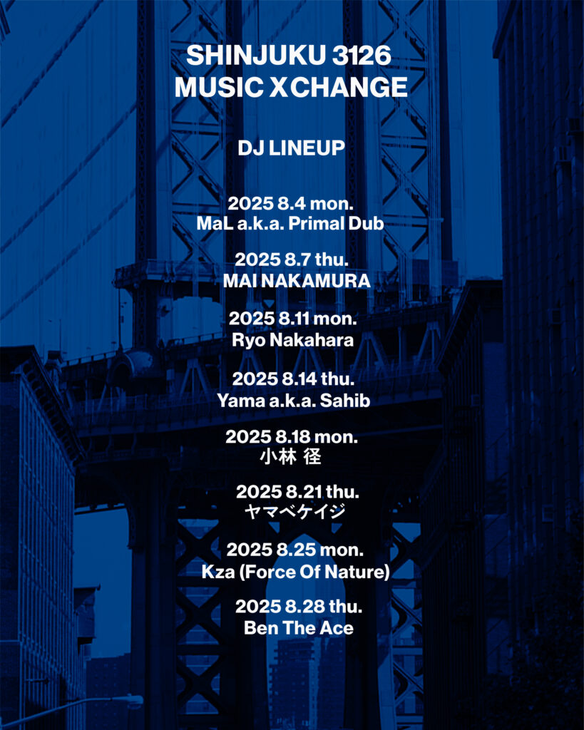『Good Music Parlor -SHINJUKU 3126 MUSIC X CHANGE-』8月のDJラインナップを公開!